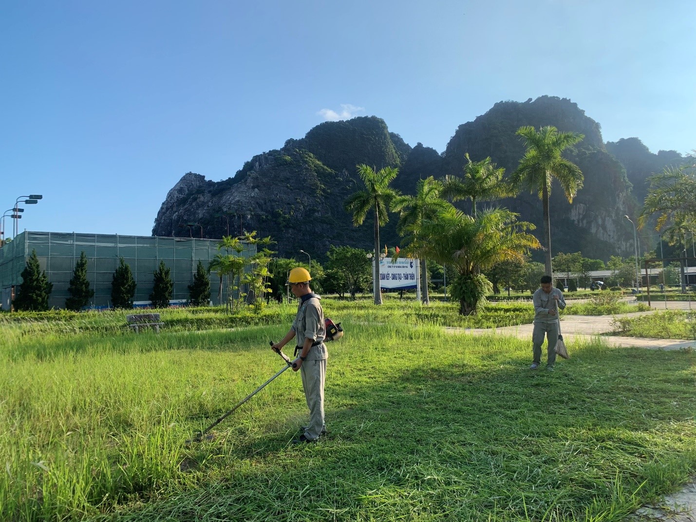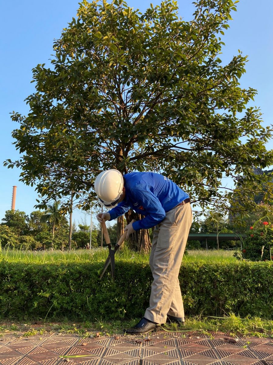 Công ty đã có hệ thống cây xanh với nhiều chủng loại và cơ bản phủ rộng khắp, tuy nhiên sau mỗi đợt mưa thì cỏ dại mọc rất nhanh, làm ảnh hưởng đến mỹ quan chung. Với quan điểm “Phát triển sản xuất kinh doanh luôn gắn liền với đảm bảo môi trường sáng, xanh, sạch, đẹp”, vì vậy phải làm gì để xây dựng một môi trường làm việc lý tưởng, khuôn viên luôn được quan tâm chăm lo, chỉnh trang thêm sáng, xanh, sạch, đẹp là yếu tố rất quan trọng và cần thiết, góp phần mang lại hiệu quả, năng suất cao trong công việc luôn là suy nghĩ, trăn trở của mỗi người Xi măng Cẩm Phả.