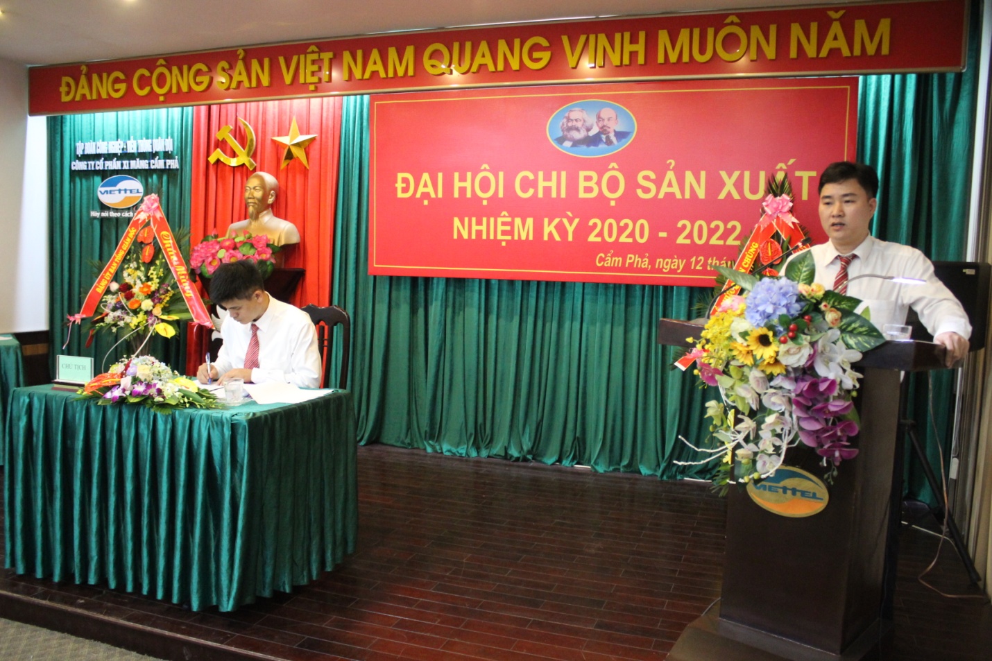 Phát biểu tại Đại hội, đ/c Tăng Bá Tuyên – Bí thư Đảng ủy Công ty đã ghi nhận những thành tích, kết quả mà chi bộ Sản xuất lãnh đạo đơn vị và cán bộ, đảng viên đã đạt được trong nhiệm kỳ 2018-2020; Đồng chí cũng yêu cầu và mong muốn trong nhiệm kỳ tới chi bộ tiếp tục phát huy tốt điểm mạnh, khắc phục các vấn đề còn tồn tại trong lãnh đạo và thực hiện; Luôn nắm chắc chủ trương, nghị quyết Đảng ủy Công ty, bám sát mục tiêu, nhiệm vụ, giải pháp mà Đại hội xác định để xây dựng mối đoàn kết trong đơn vị, xây dựng đơn vị VMTD và Chi bộ TSVM và lãnh đạo đơn vị hoàn thành xuất sắc mọi nhiệm vụ được giao.