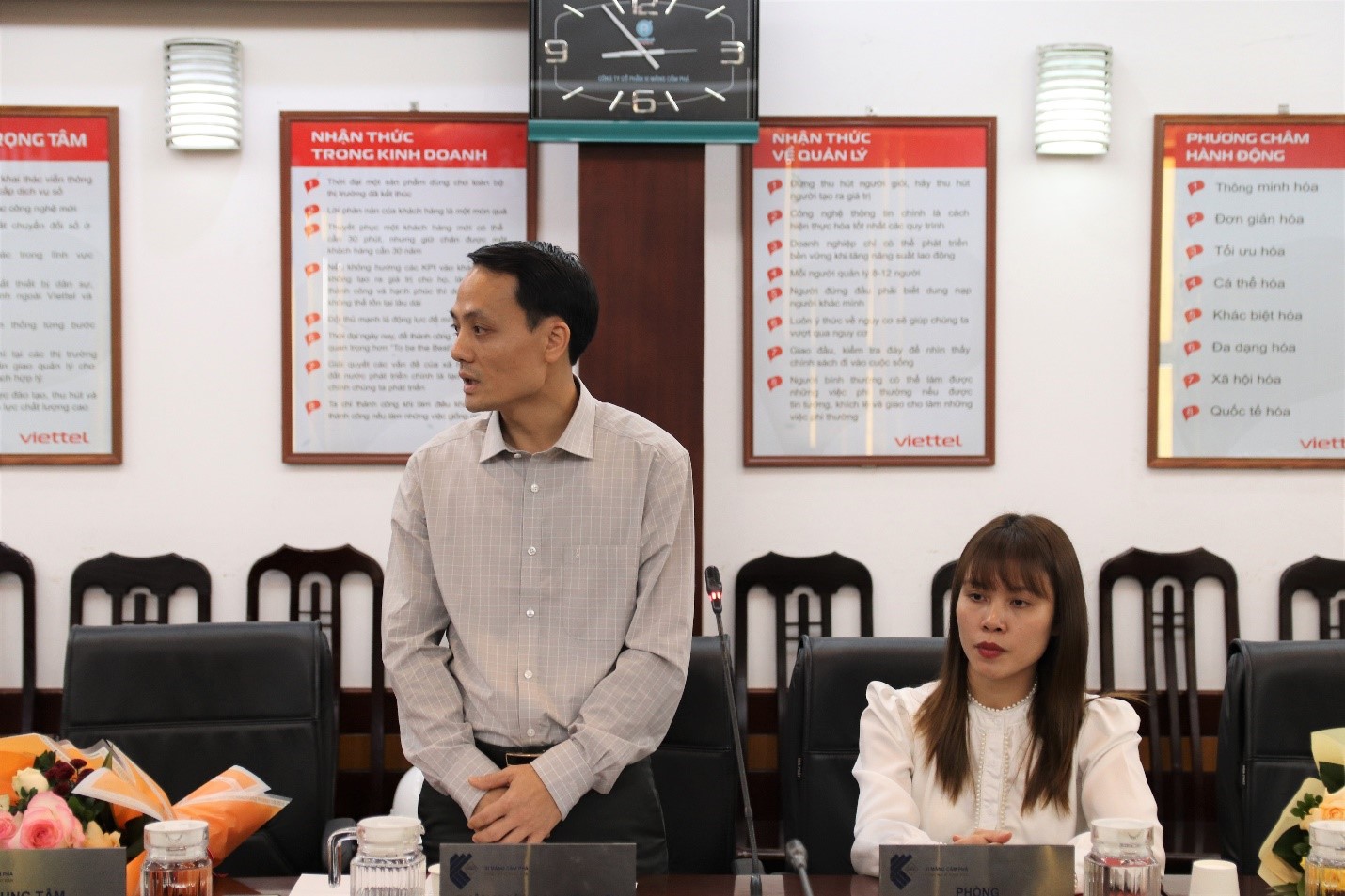 Ban lãnh đạo Công ty trao quyết định cho đ/c Vũ Viết Văn và đ/c Đinh Thị Nhung