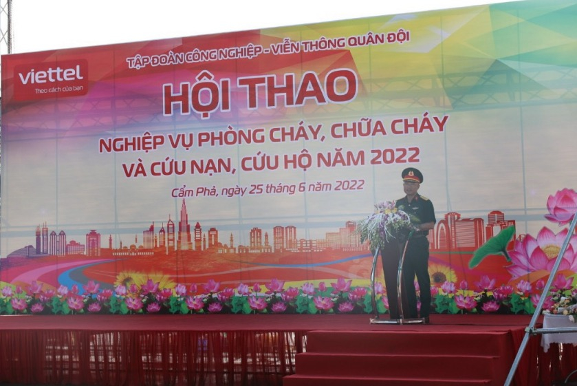 Ngày 25/6, TP Cẩm Phả, Tập đoàn Công nghiệp - Viễn thông Quân đội Viettel tổ chức Hội thao nghiệp vụ PCCC & CNCH năm 2022 tại Công ty Cổ phần Xi măng Cẩm Phả.