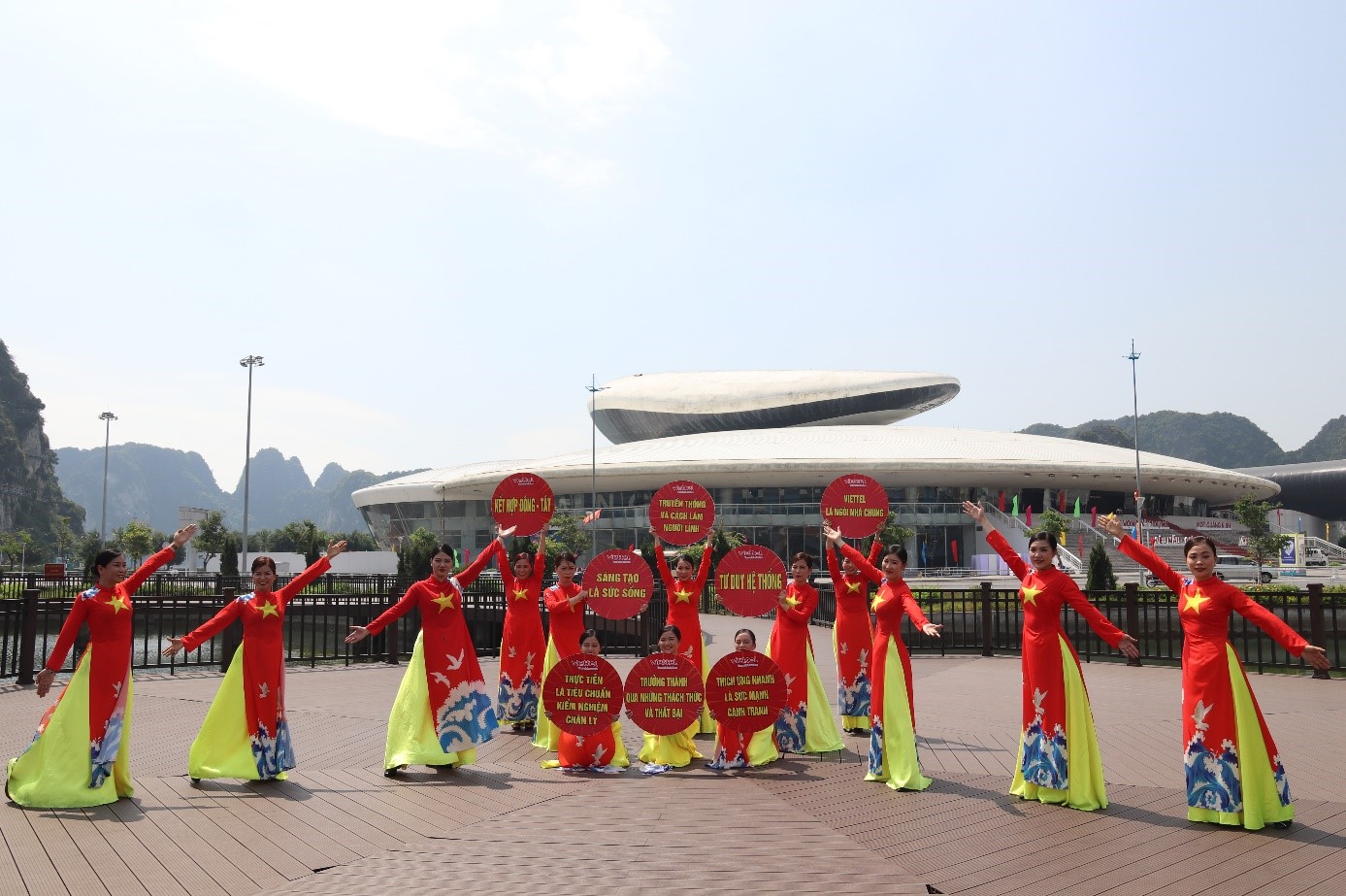 Dưới cái nắng hanh khô của mùa thu, những giọt mồ hôi thấm đẫm lưng áo nhưng cũng không thể làm giảm nhiệt huyết, hòa mình vào âm nhạc sôi động của bản mashup “Viettel ca” và “Hãy vươn cao hơn”.