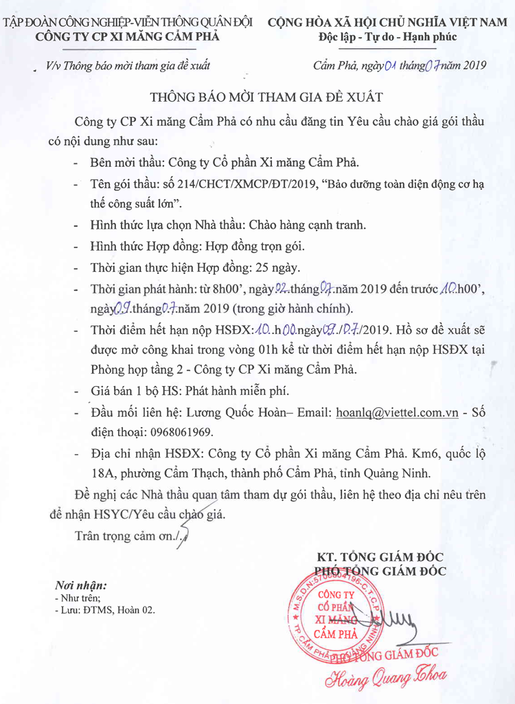 Thông báo mời tham gia đề xuất bảo dưỡng toàn diện động cơ hạ thế công suất lớn