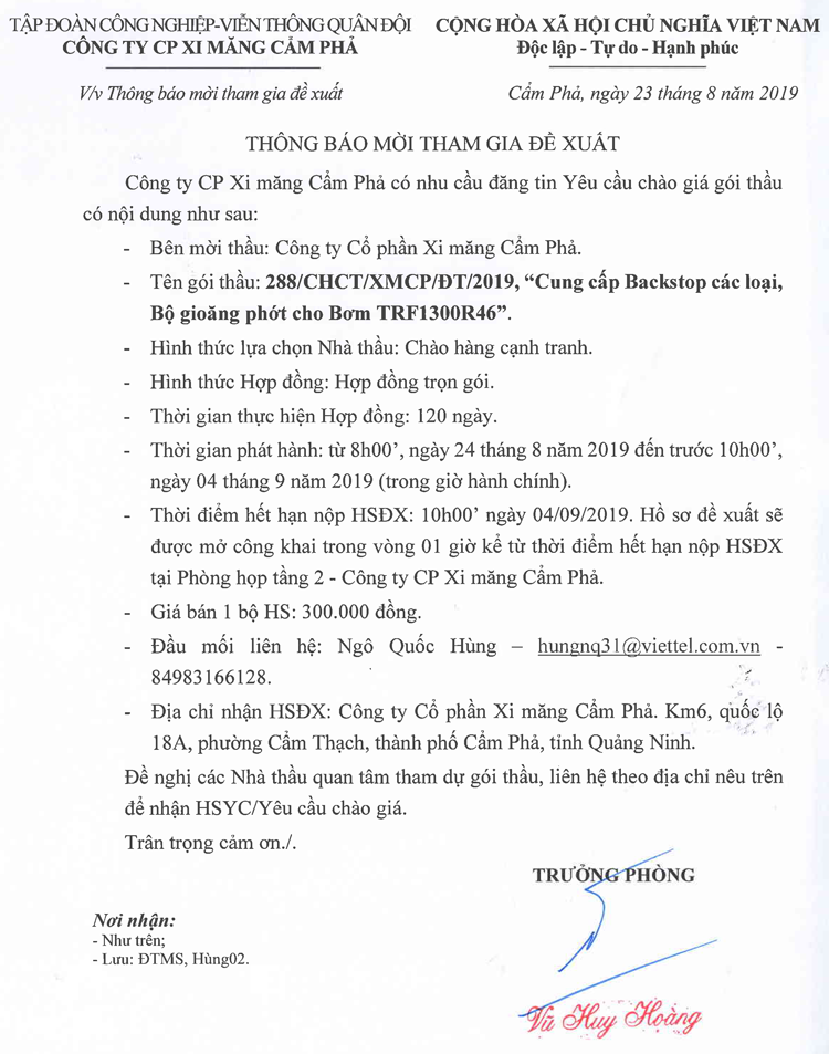 Thông báo mời tham gia đề xuất Cung cấp Backstop các loại, bộ gioăng phớt cho bơm TRF1300R46