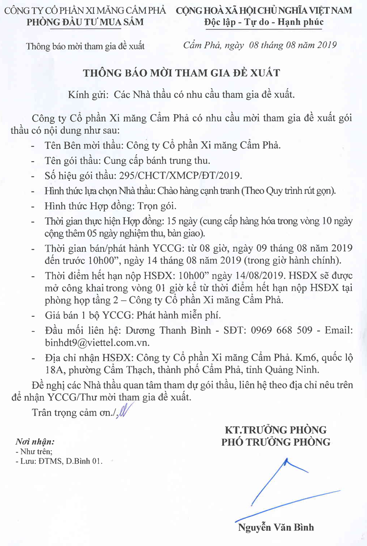 Thông báo mời tham gia đề xuất Cung cấp bánh Trung thu