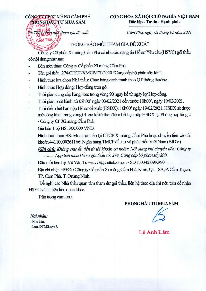 Thông báo mời tham gia đề xuất cung cấp bộ phận sấy khí