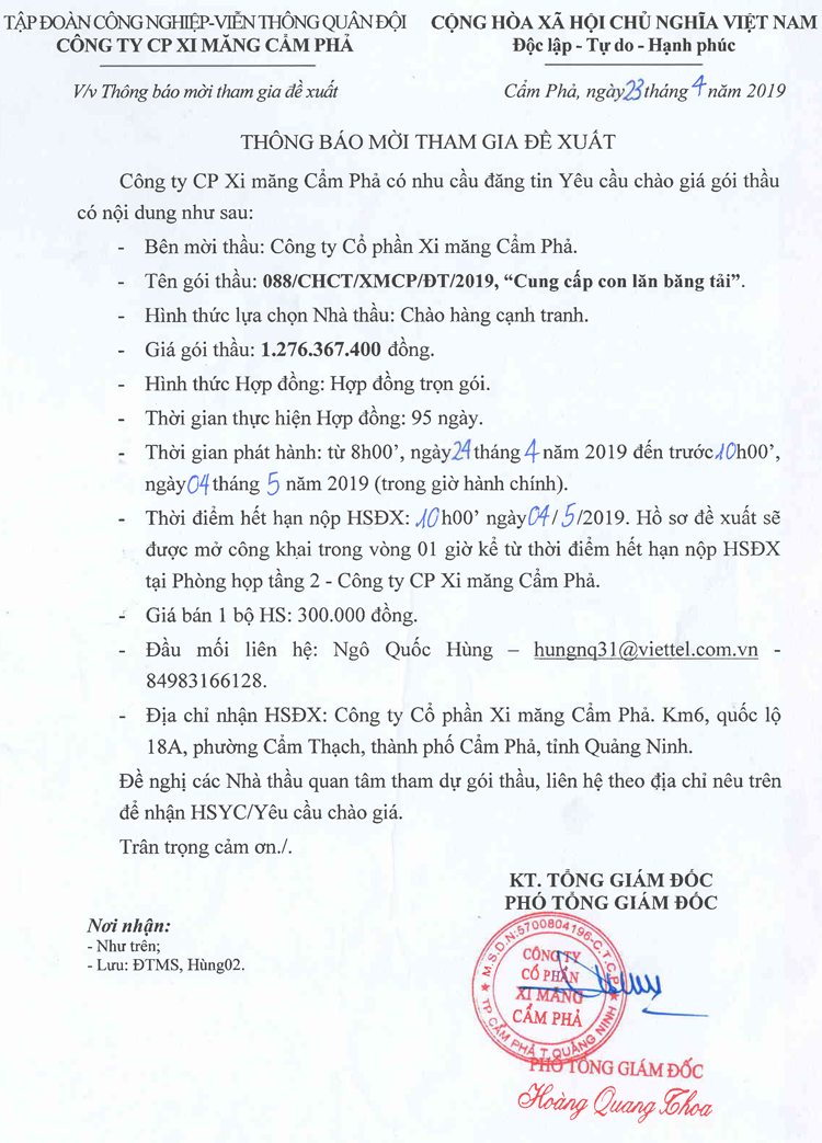 Thông báo mời tham gia đề xuất cung cấp con lăn băng tải