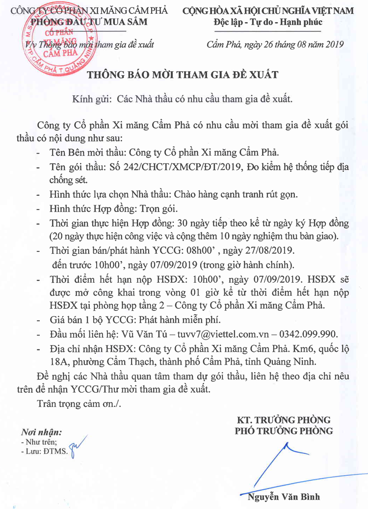 Thông báo mời tham gia đề xuất cung cấp dịch vụ Đo kiểm hệ thống tiếp địa chống sét
