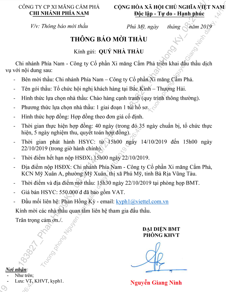 Thông báo mời tham gia đề xuất cung cấp dịch vụ Tổ chức Hội nghị khách hàng tại Bắc Kinh - Thượng Hải