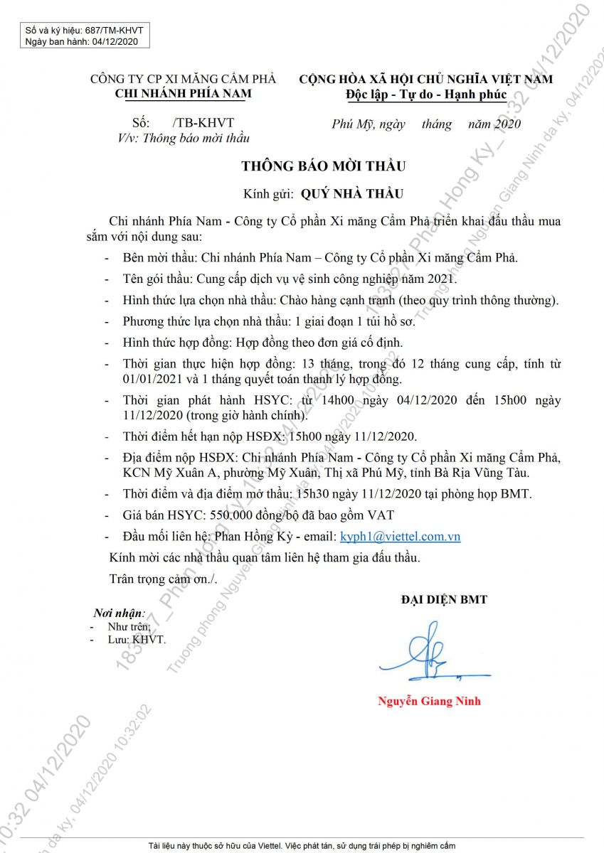 Thông báo mời tham gia đề xuất cung cấp dịch vụ vệ sinh công nghiệp năm 2021