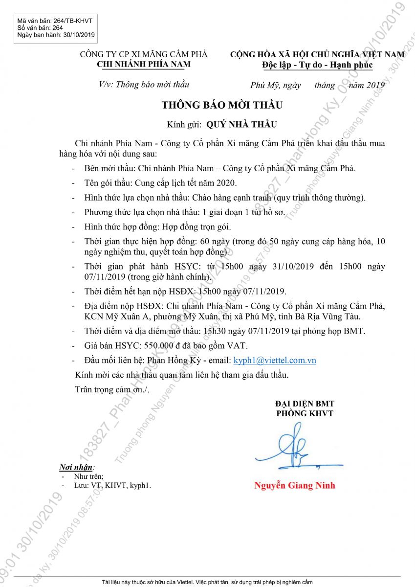 Thông báo mời tham gia đề xuất Cung cấp lịch Tết năm 2020
