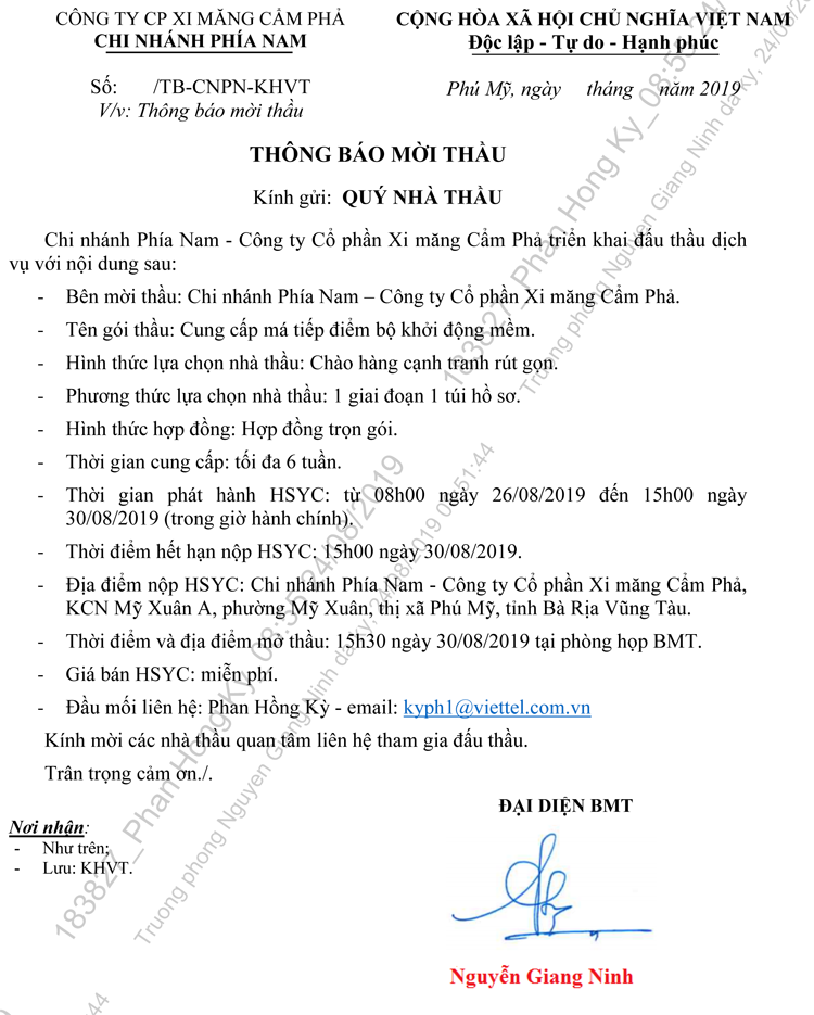 Thông báo mời tham gia đề xuất Cung cấp má tiếp điểm bộ khởi động mềm