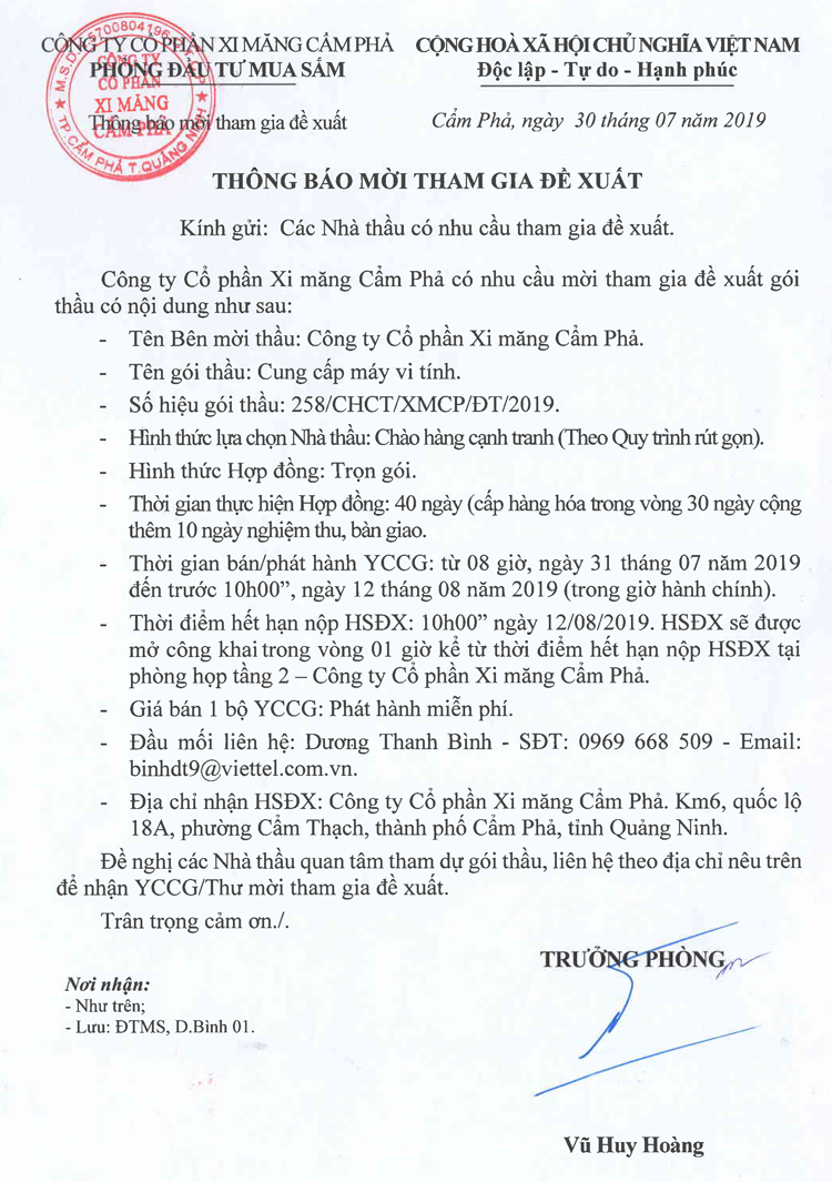 Thông báo mời tham gia đề xuất cung cấp máy vi tính