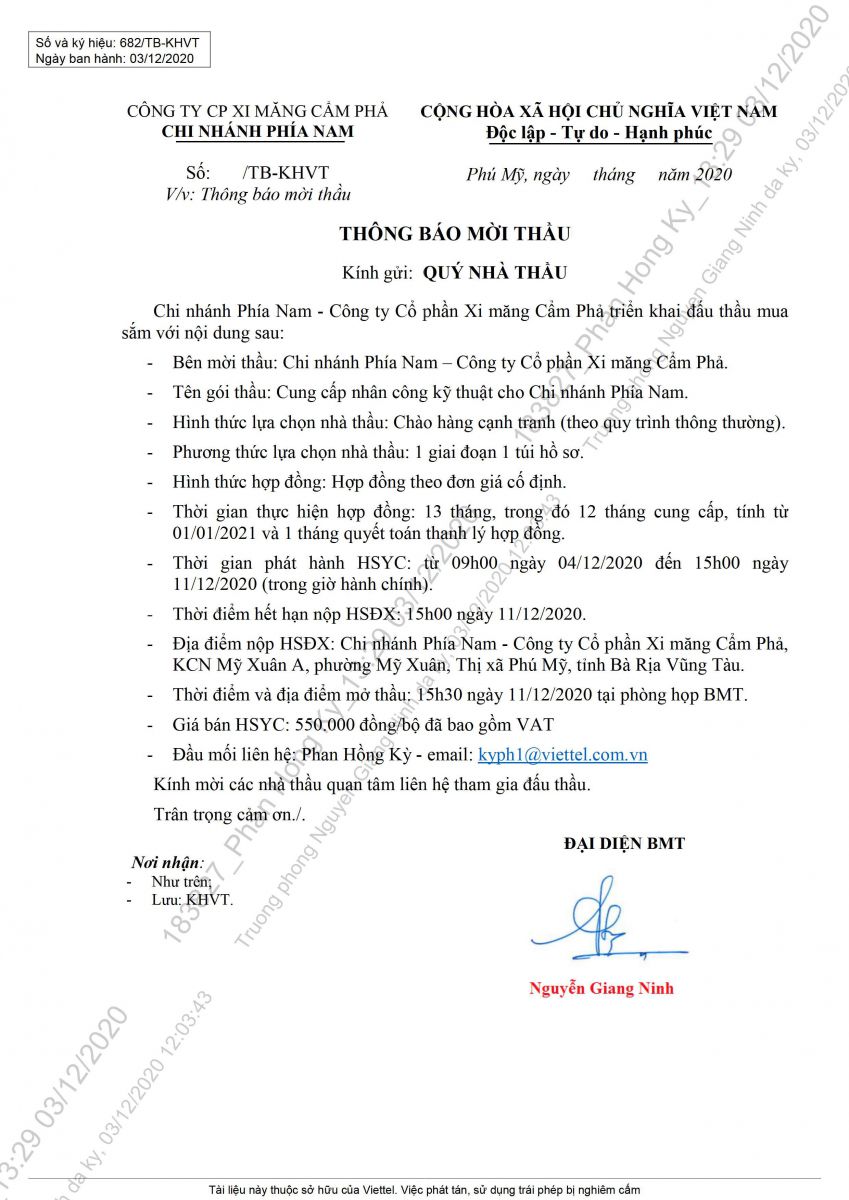 Thông báo mời tham gia đề xuất cung cấp nhân công kỹ thuật cho Chi nhánh Phía Nam