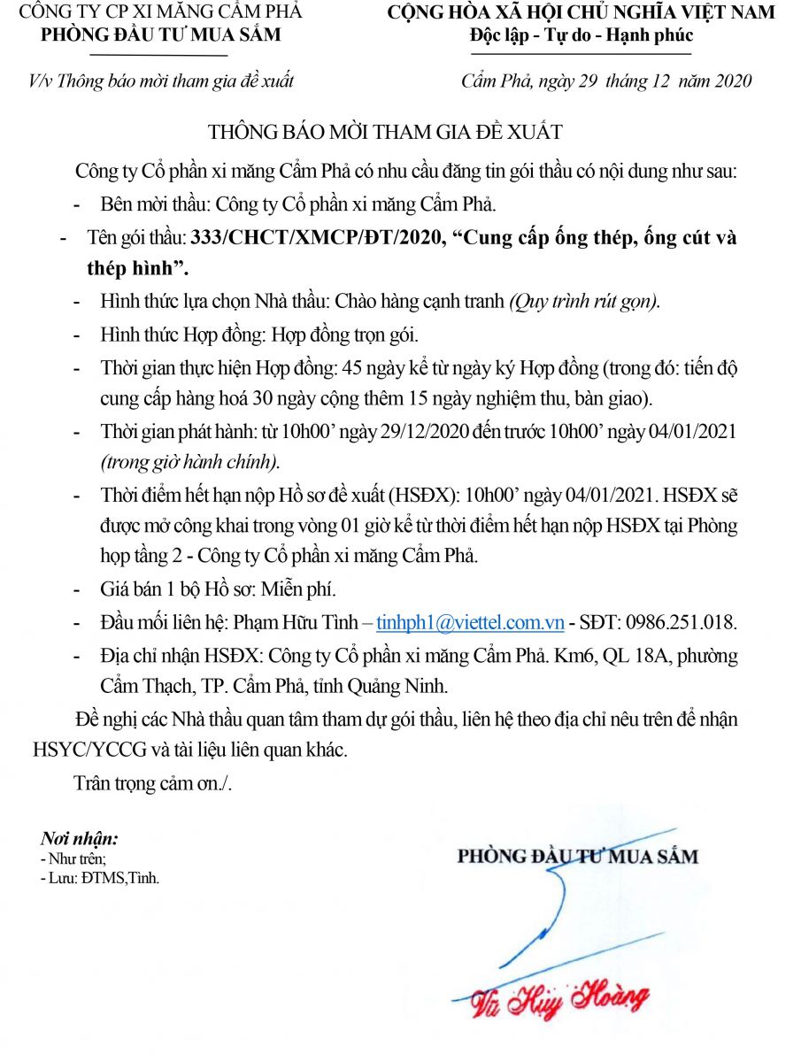 Thông báo mời tham gia đề xuất cung cấp ống thép, ống cút và thép hình