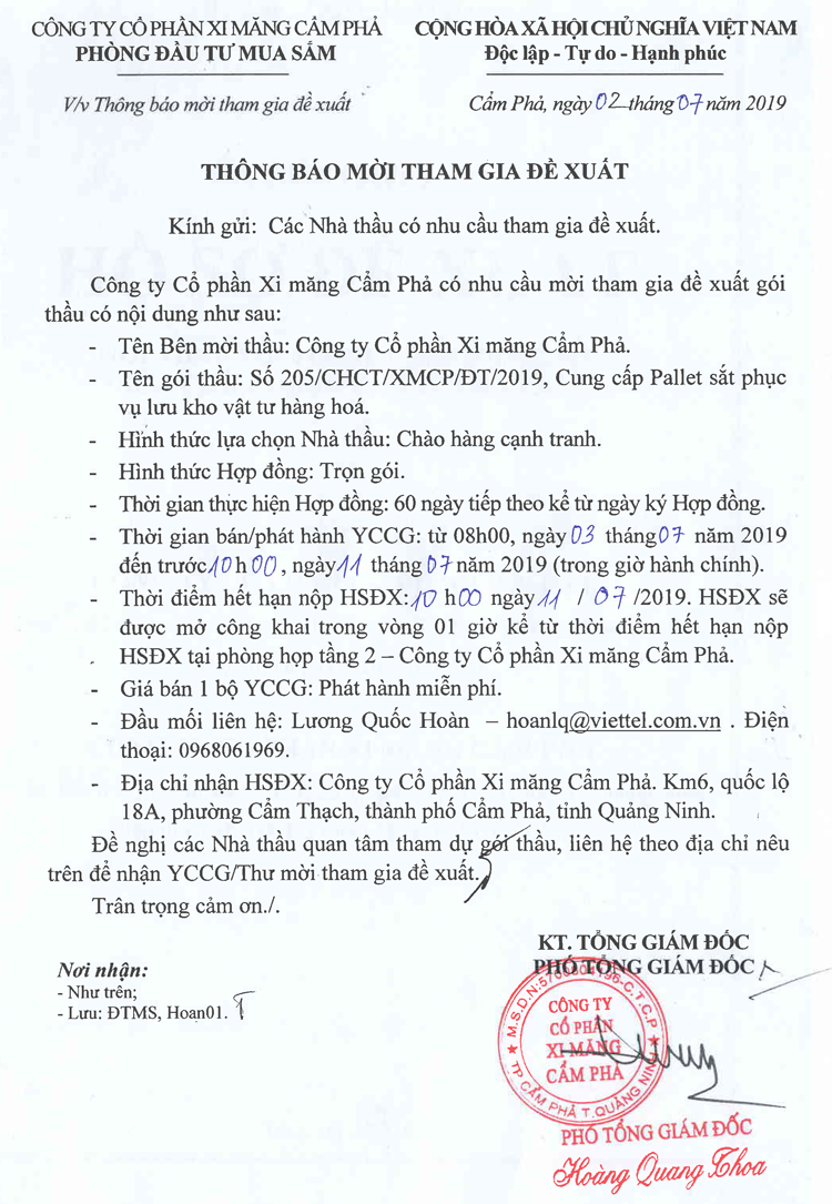 Thông báo mời tham gia đề xuất cung cấp Pallet sắt phục vụ lưu kho vật tư hàng hóa