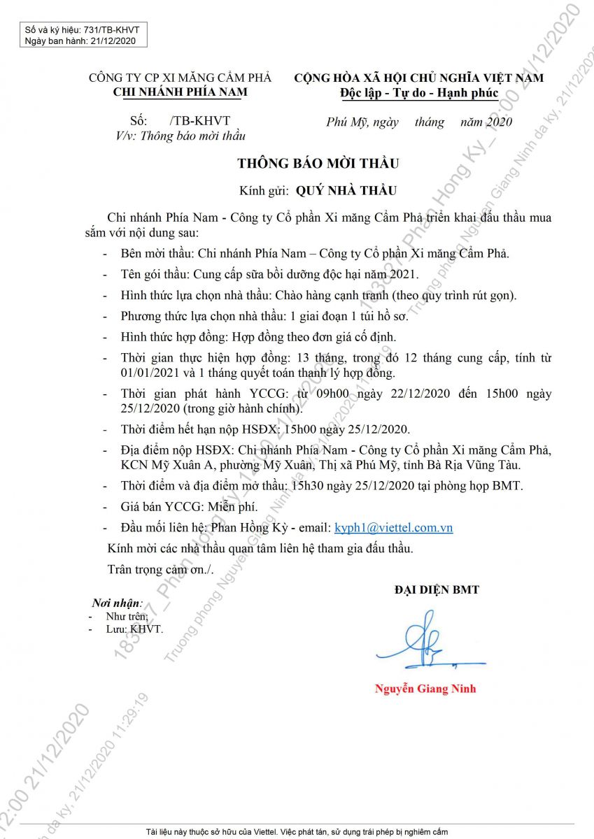 Thông báo mời tham gia đề xuất cung cấp sữa bồi dưỡng độc hại năm 2021