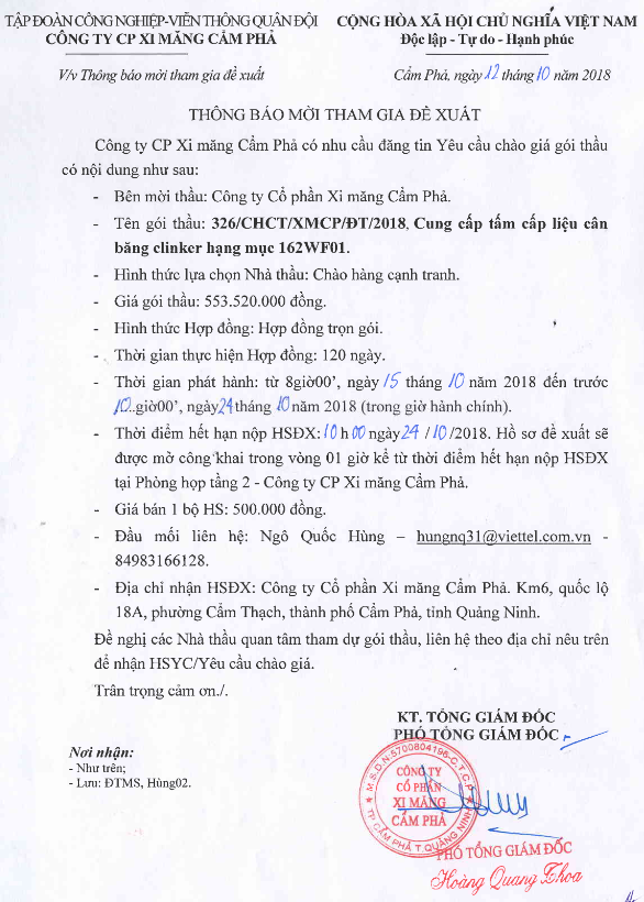 Thông báo mời tham gia đề xuất cung cấp tấm cấp liệu cân băng Clinker