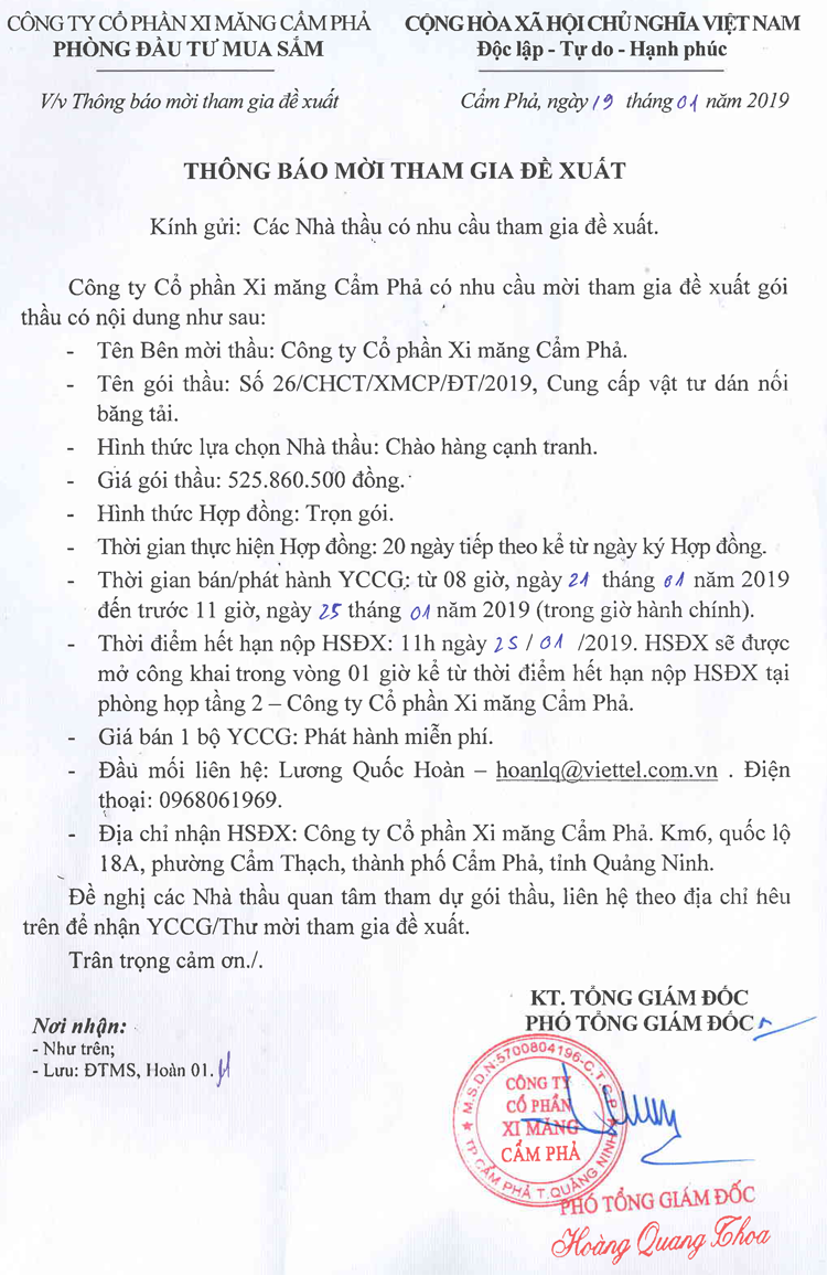 Thông báo mời tham gia đề xuất cung cấp vật tư dán nối Băng tải