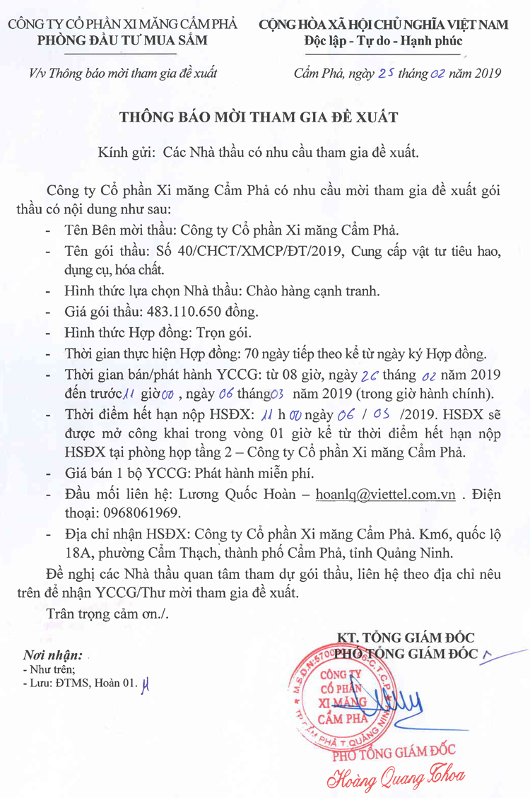 Thông báo mời tham gia đề xuất cung cấp vật tư tiêu hao, dụng cụ, hóa chất