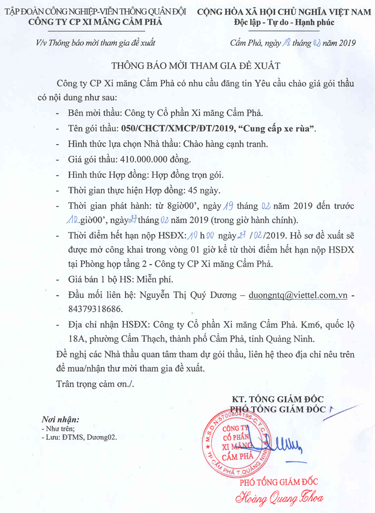 Thông báo mời tham gia đề xuất cung cấp xe rùa