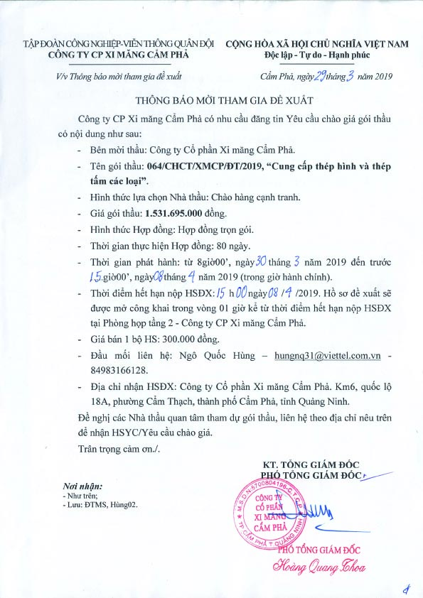 Thông báo mời tham gia đề xuất gói thầu cung cấp thép hình và thép tấm các loại