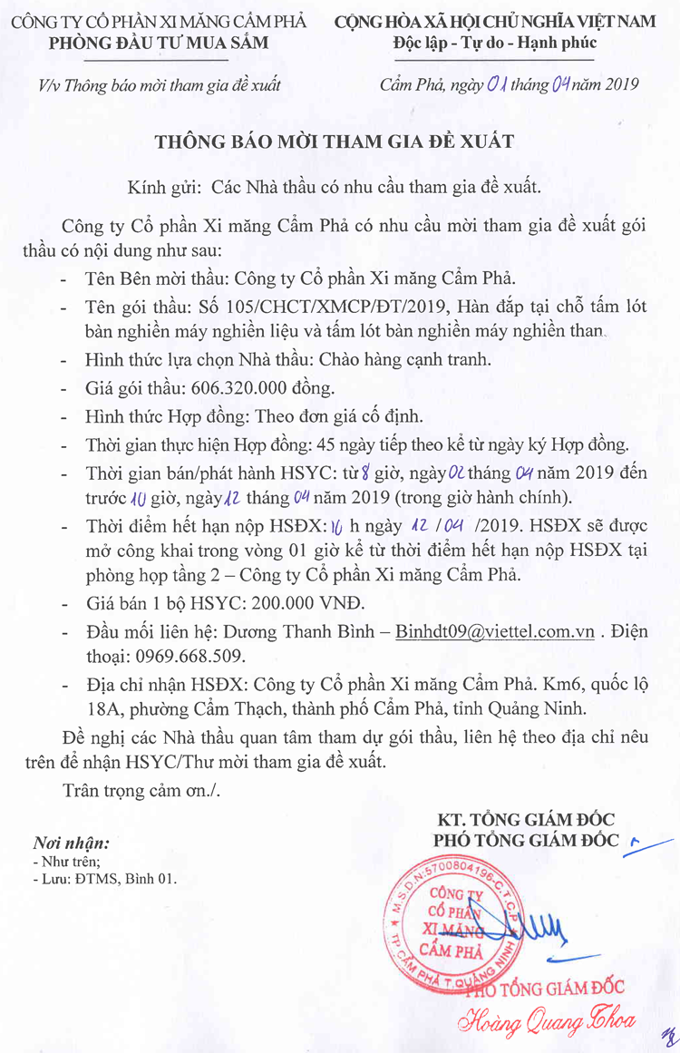 Thông báo mời tham gia đề xuất hàn đắp tại chỗ tấm lót bàn nghiền máy nghiền than và máy nghiền liệu