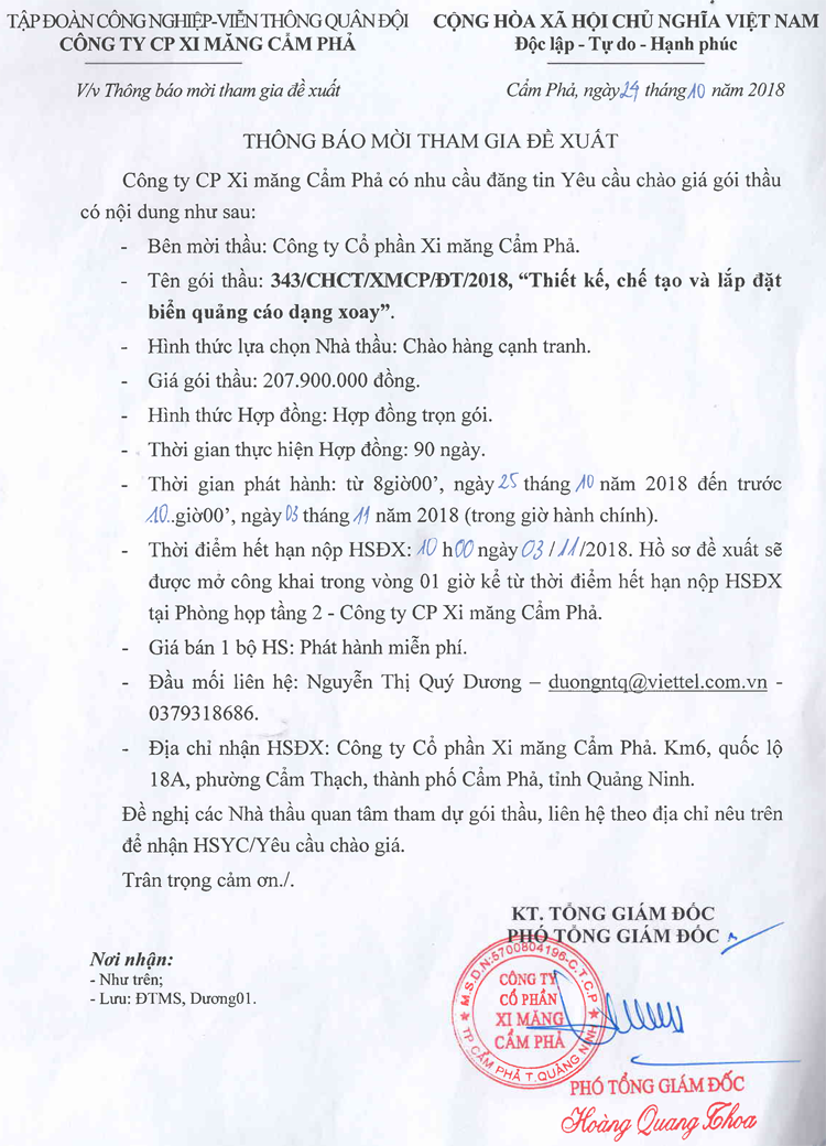 Thông báo mời tham gia đề xuất thiết kế chế tạo và lắp đặt biển quảng cáo xoay
