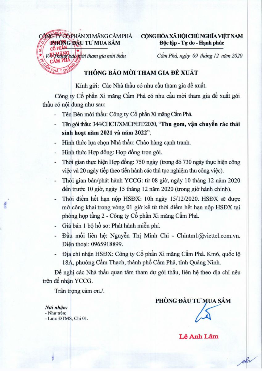 Thông báo mời tham gia đề xuất thu gom, vận chuyển rác thải sinh hoạt năm 2021 và năm 2022