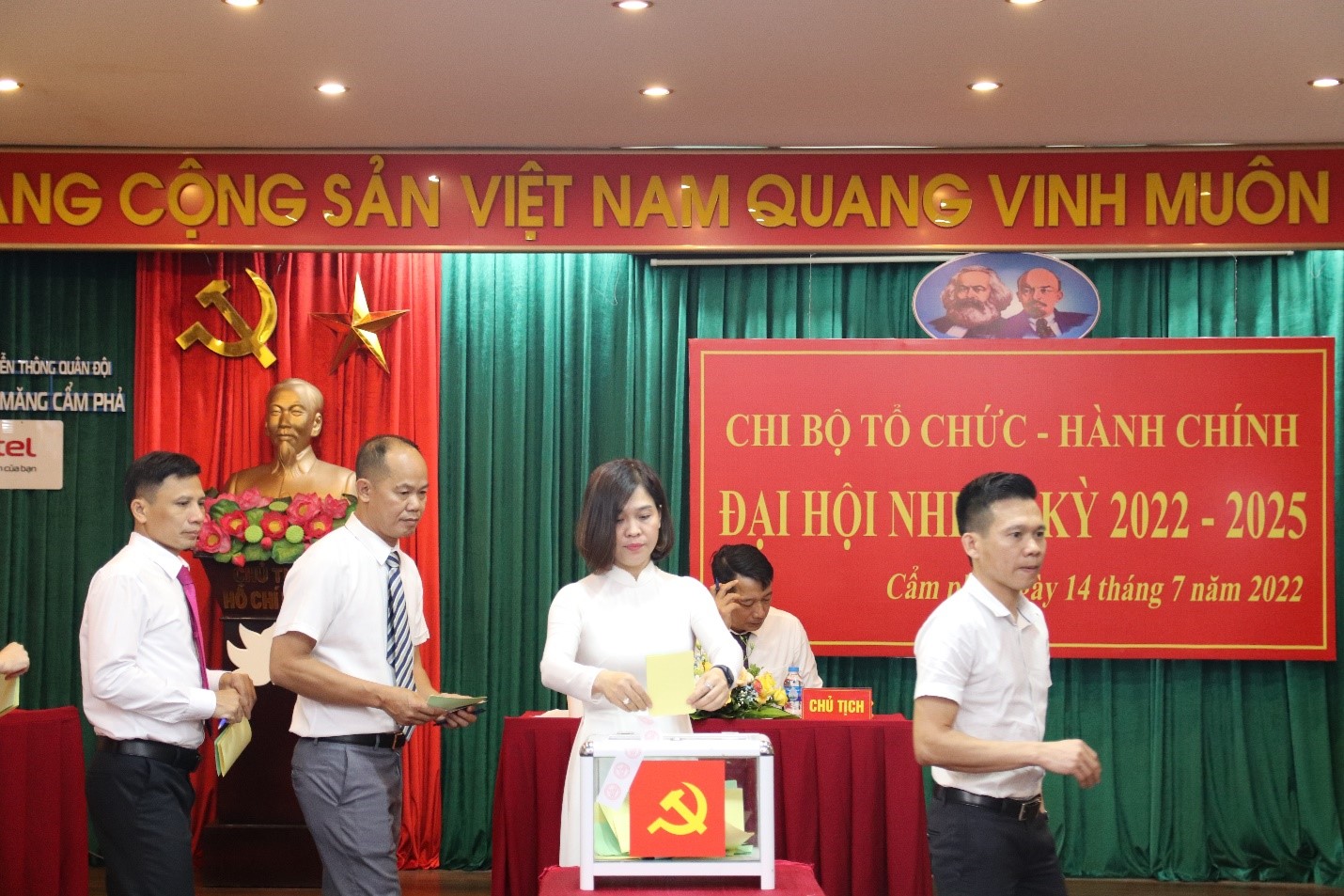 Thực hiện sự chỉ đạo của Đảng ủy Tập đoàn Công nghiệp – Viễn thông Quân đội và được sự chấp thuận của Đảng ủy Công ty CP Xi măng Cẩm Phả, ngày 14/07/2022, Chi bộ Tổ chức – Hành chính đã tổ chức Đại hội Chi bộ - Đại hội điểm, nhằm đánh giá kết quả thực hiện Nghị quyết Đại hội nhiệm kỳ 2020 - 2022, đề ra mục tiêu, nhiệm vụ, giải pháp cho nhiệm kỳ mới; Bầu Chi ủy, bầu Bí thư và Phó bí thư Chi bộ nhiệm kỳ 2022 - 2025.