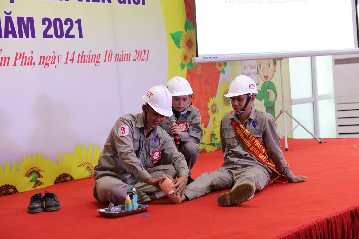 Trong đó nổi bật hơn cả là phần thi thực hành. Mỗi đội thi thực hiện 01 bài thi thực hành với chủ đề là các thao tác sơ cấp cứu tai nạn lao động, xử lý sự cố và phối hợp ứng cứu tại chỗ (như cấp cứu điện giật, sơ cứu băng bó các vết thương,…). Các đội thi đã vận dụng lý thuyết, áp dụng vào thực tế một cách thuần thục, chuyên nghiệp, đạt được sự đánh giá cao từ Ban Giám khảo.