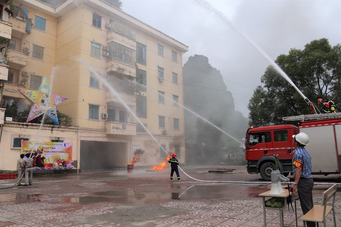 Để chủ động trong công tác phòng cháy, chữa cháy và hạn chế thấp nhất thiệt hại do cháy nổ gây ra, sáng ngày 29/11/2022, Công ty CP Xi măng Cẩm Phả đã phối hợp cùng Phòng Cảnh sát PCCC&CNCH – Công an tỉnh Quảng Ninh tổ chức triển khai thực hiện diễn tập phương án chữa cháy và cứu nạn, cứu hộ tại khu tập thể 5 tầng cho CBCNV Công ty.