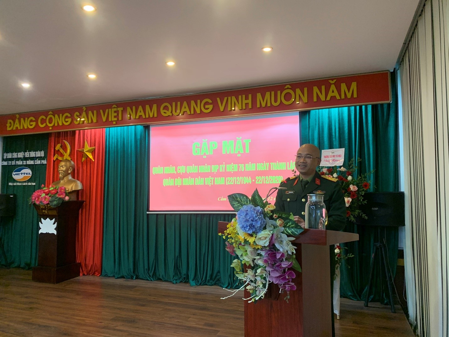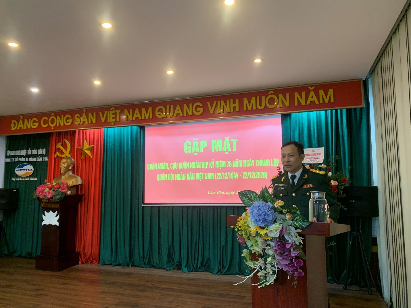 Đến hẹn lại lên, vào những ngày cuối cùng của năm 2020, toàn thể CBCNV của Tập đoàn Công nghiệp – Viễn thông Quân đội nói chung và Công ty CP Xi măng Cẩm Phả nói riêng cùng nhau hướng về và chào đón một sự kiện rất ý nghĩa đối với nền Quốc phòng Việt Nam, đó là ngày thành lập Quân đội Nhân dân Việt Nam (22/12/2020). Nhằm kỷ niệm 76 năm ngày thành lập Quân đội Nhân dân Việt Nam (22/12/1944 – 22/12/2020), ngày 21/12/2020, Công ty CP Xi măng Cẩm Phả đã long trọng tổ chức buổi gặp mặt quân nhân, cựu quân nhân đang công tác để cùng nhau ôn lại Lịch sử truyền thống oanh liệt, hào hùng của Quân và Dân ta trong sự nghiệp đấu tranh giải phóng dân tộc của đất nước.