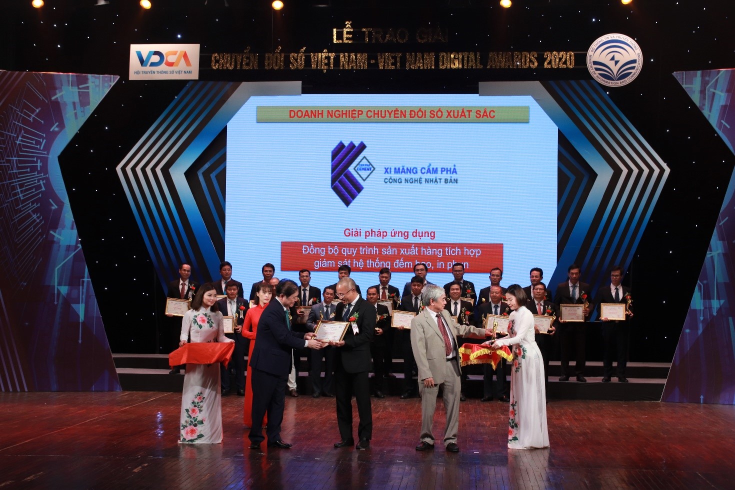 Trong đội hình của Tập đoàn Công nghiệp – Viễn thông Quân đội, Công ty CP Xi măng Cẩm Phả đã tham gia và vinh dự được trao tặng Danh hiệu “Doanh nghiệp chuyển đổi số xuất sắc” với sản phẩm “Đồng bộ quy trình xuất hàng tích hợp giám sát hệ thống đếm bao, in phun”.