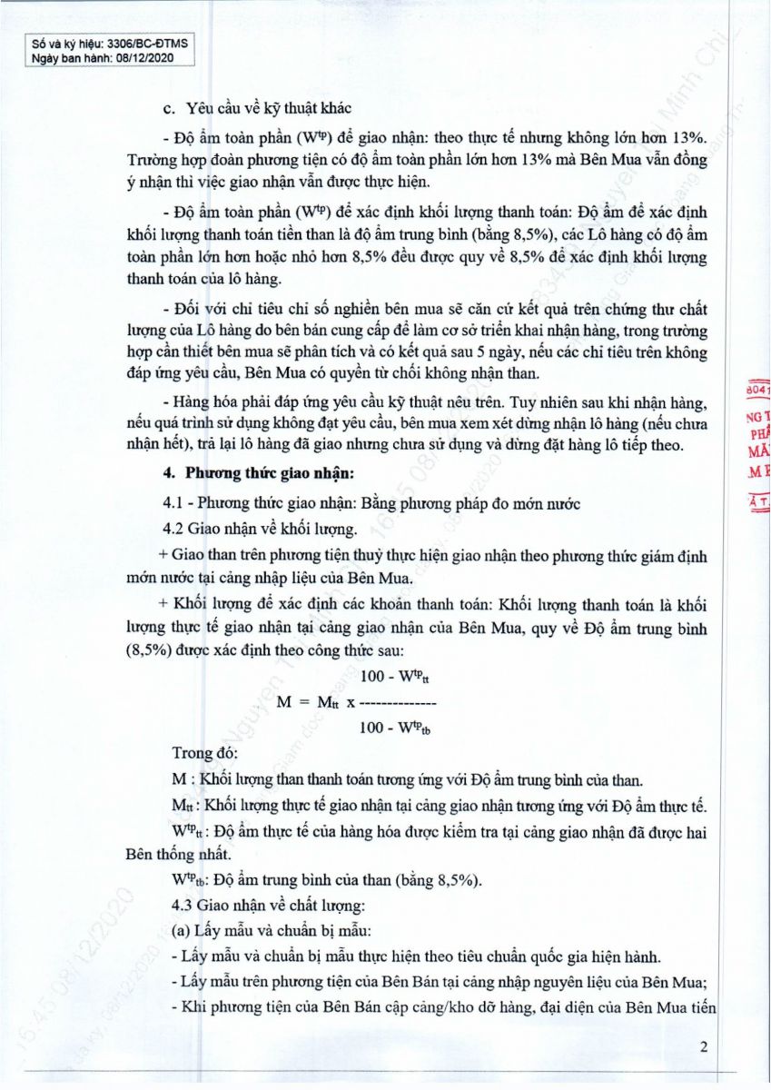 Yêu cầu báo giá than nhập khẩu tháng 12/2020 và tháng 01/2021